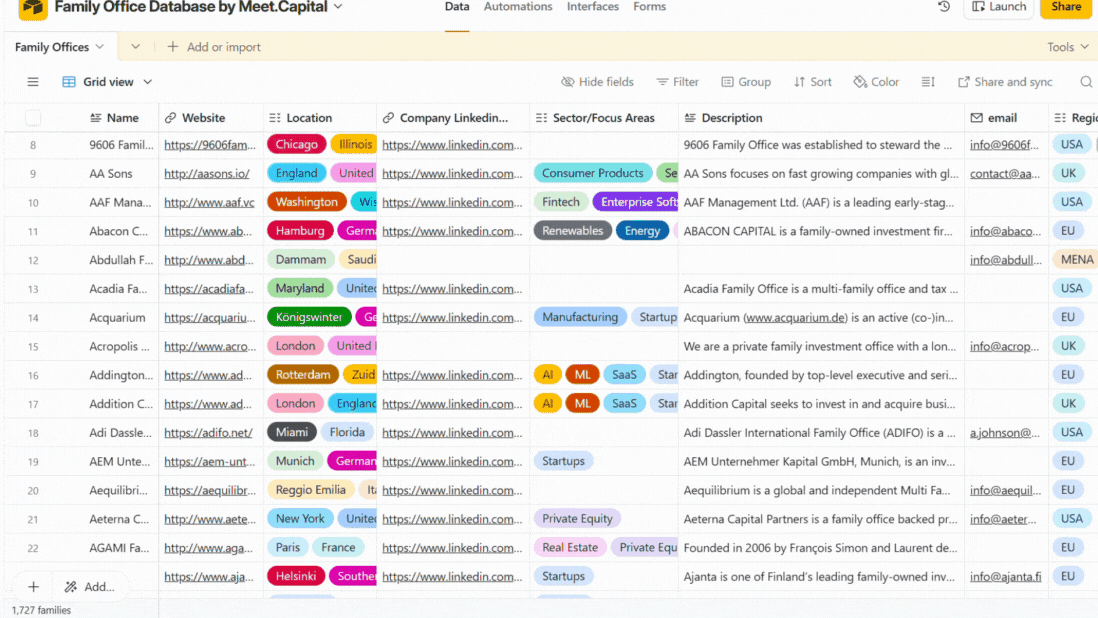 - 100% of the family offices in the database have a live online presence, including a verified and active website, LinkedIn company page, or both.